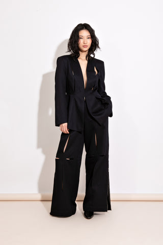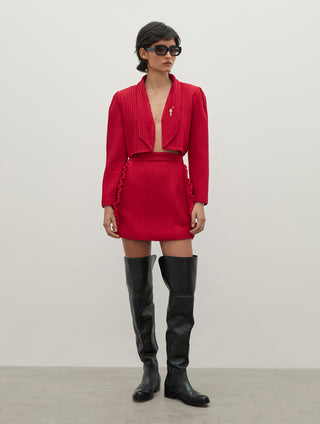 Somos feitos de camadas, costuras, desvios e rasgos. Nossa pele é tecido. Nossa história, modelagem. E nossa coleção 12 — Autobiografia, é um espelho disso tudo. Inspirada na obra Autobiografia do Vermelho, de Anne Carson, esta coleção nasce onde a mitologia encontra o afeto, onde Hércules ama Gerião, onde o monstro não é vilão, é espelho. O vermelho, cor de sangue, de arte, de desejo, atravessa tudo. É emoção crua. É intensidade encarnada.