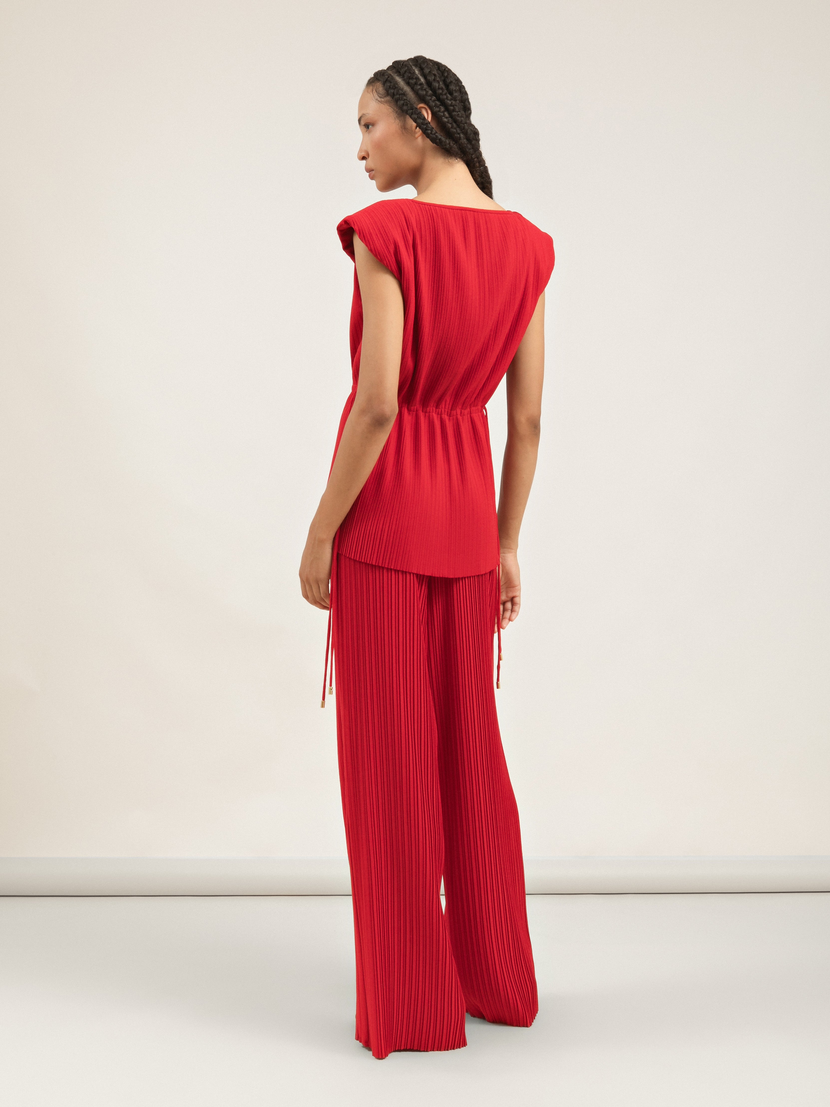 • Cotidiano Dinâmico: Combine com uma calça de alfaiataria reta e mocassins para um look de trabalho que não perde o frescor. O plissado resistente garante que você termine o dia com a mesma aparência impecável com que começou.