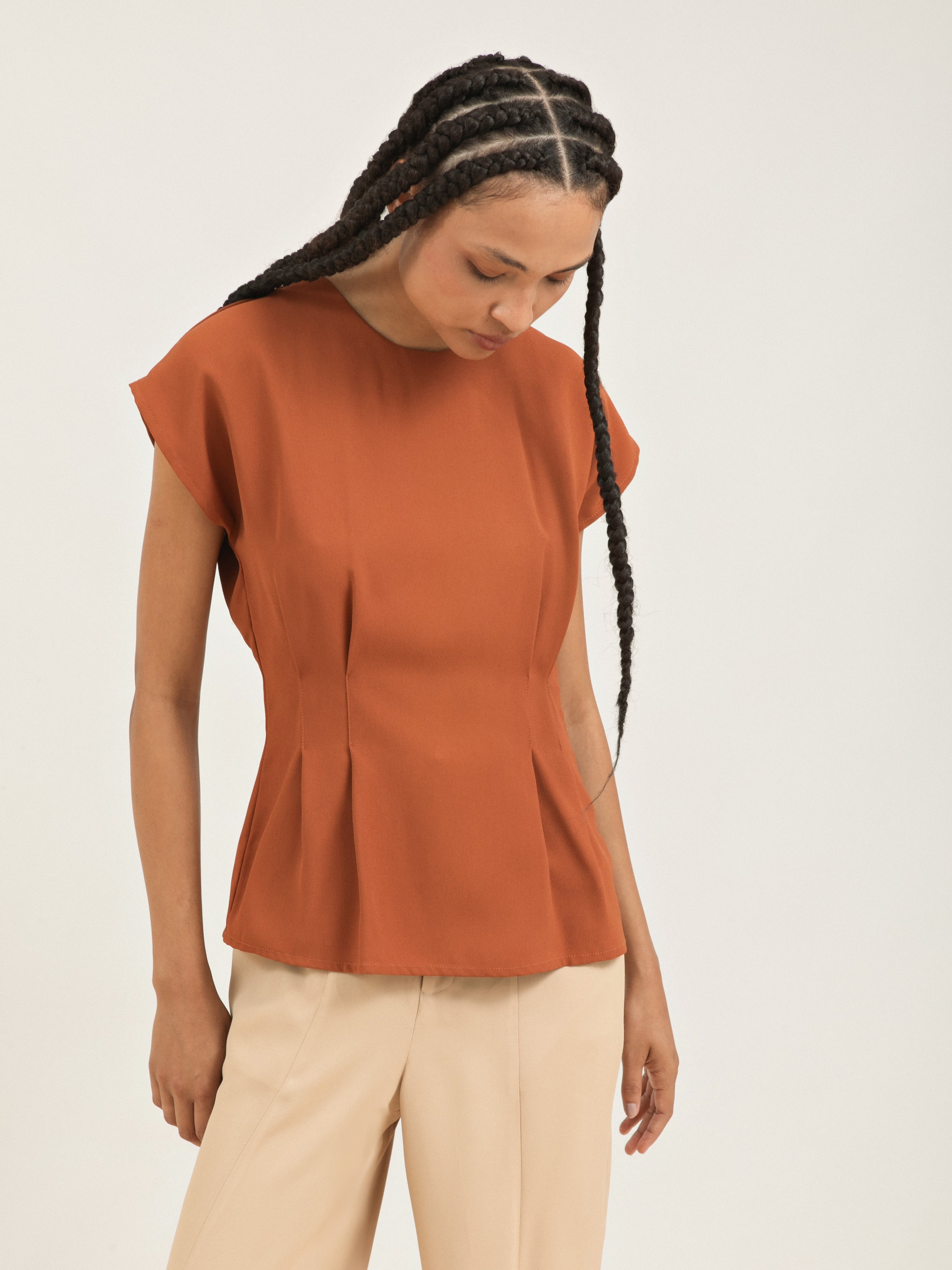 A Blusa Travessia traz o equilíbrio entre o rigor da alfaiataria e a leveza das formas orgânicas. Com um design que valoriza a arquitetura do corpo, esta blusa destaca-se pelos ombros levemente flutuantes e pelas pregas estratégicas, que esculpem a cintura de forma delicada e sofisticada.
