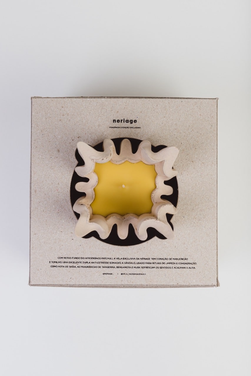A nossa vela foi desenvolvida pela Vela made in São Paulo e tem aroma exclusivo Neriage. Ela é feita em concreto com design que remete aos nossos clássicos plissados.